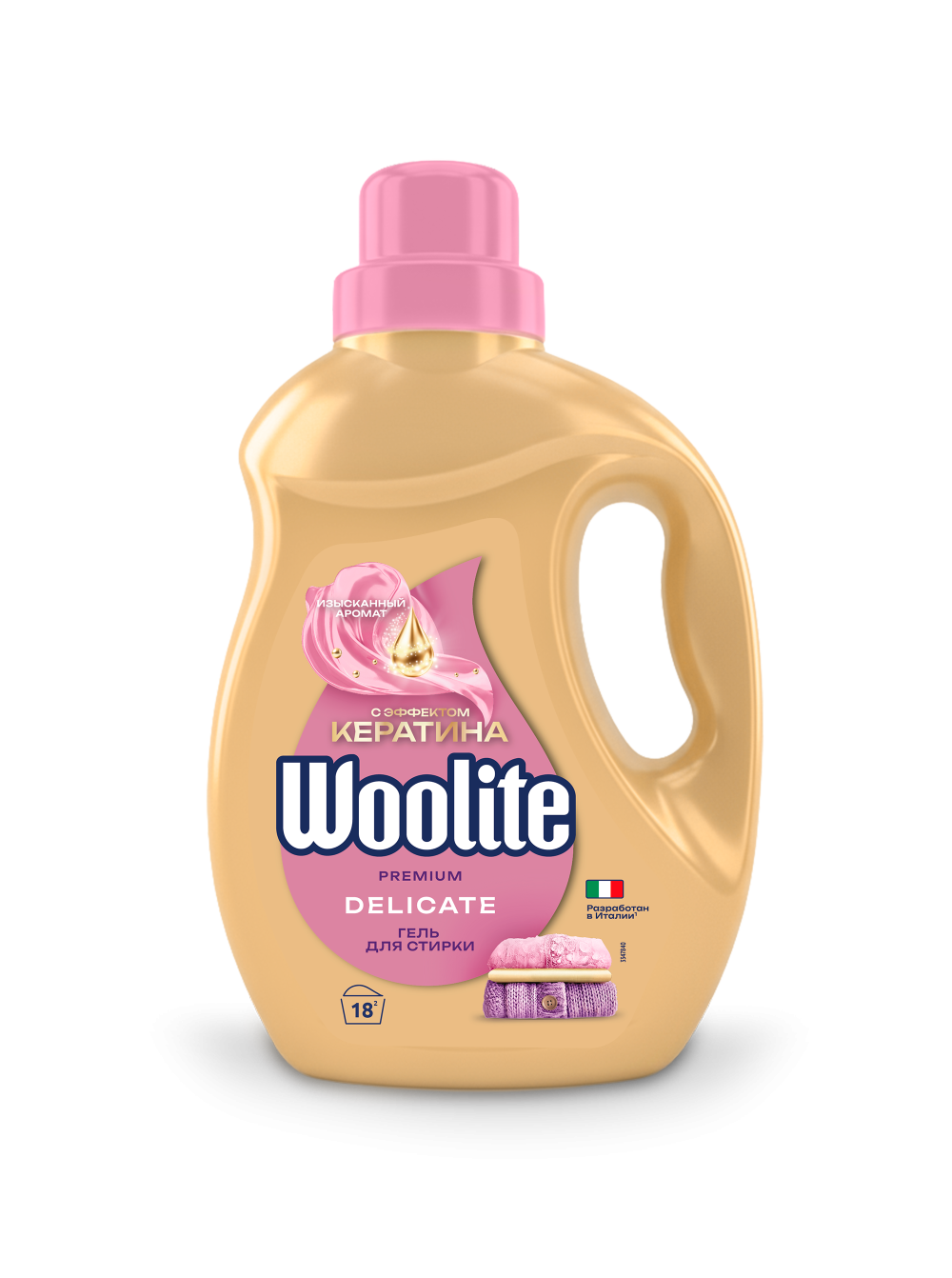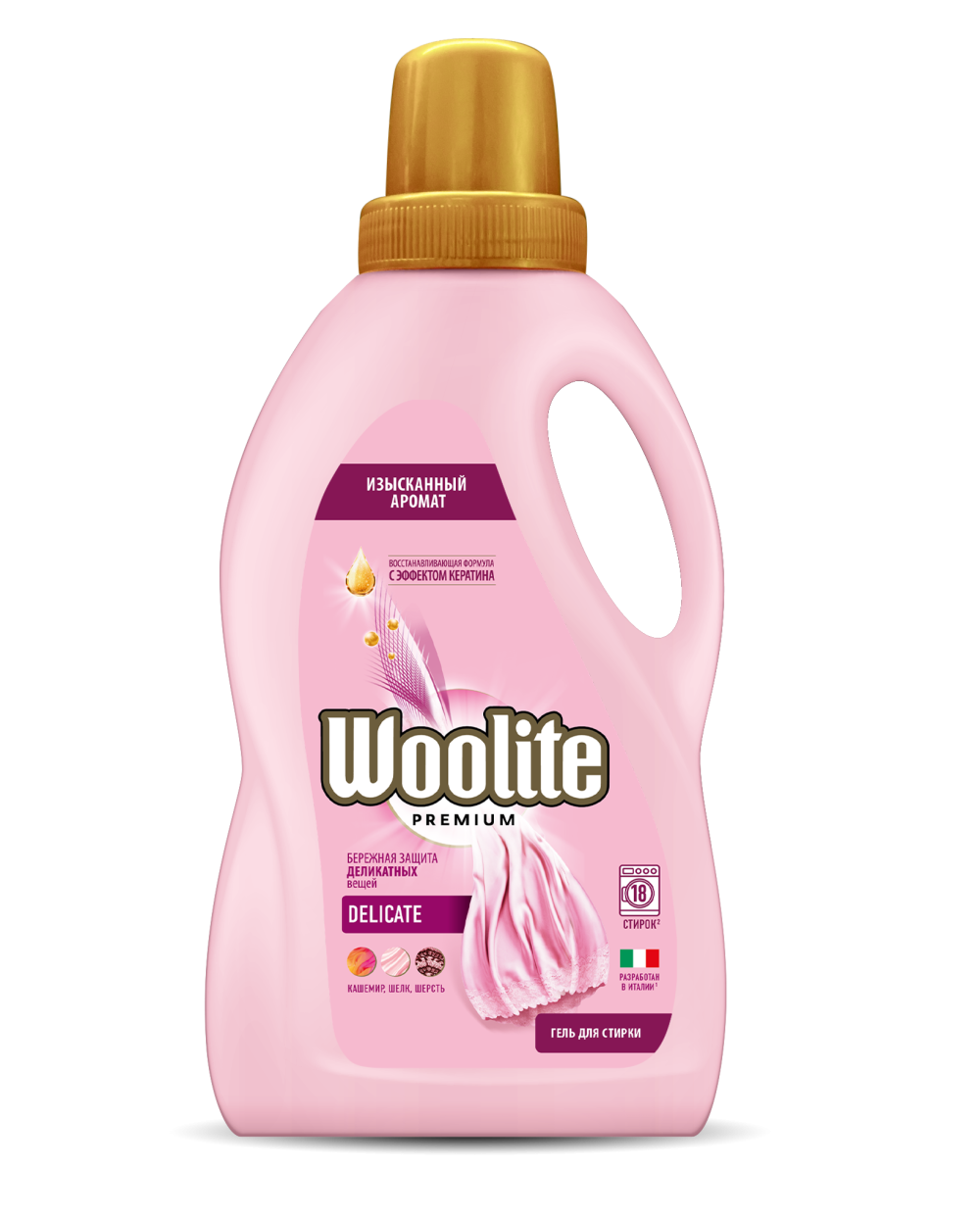 - Добавьте моющее средство, например гель для стирки Woolite Premium Delicate с нежным ароматом и нотами цветущей фрезии и розы – оно подходит как для машинной, так и ручной стирки деликатных тканей.